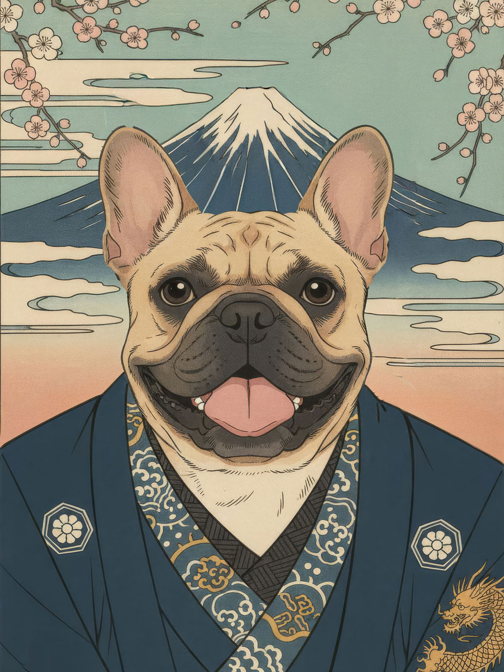 Bring your pet’s charm to life in a Japanese semi-realistic cartoon style, designed specially for spring with pastel blossoms and gentle daylight tones.